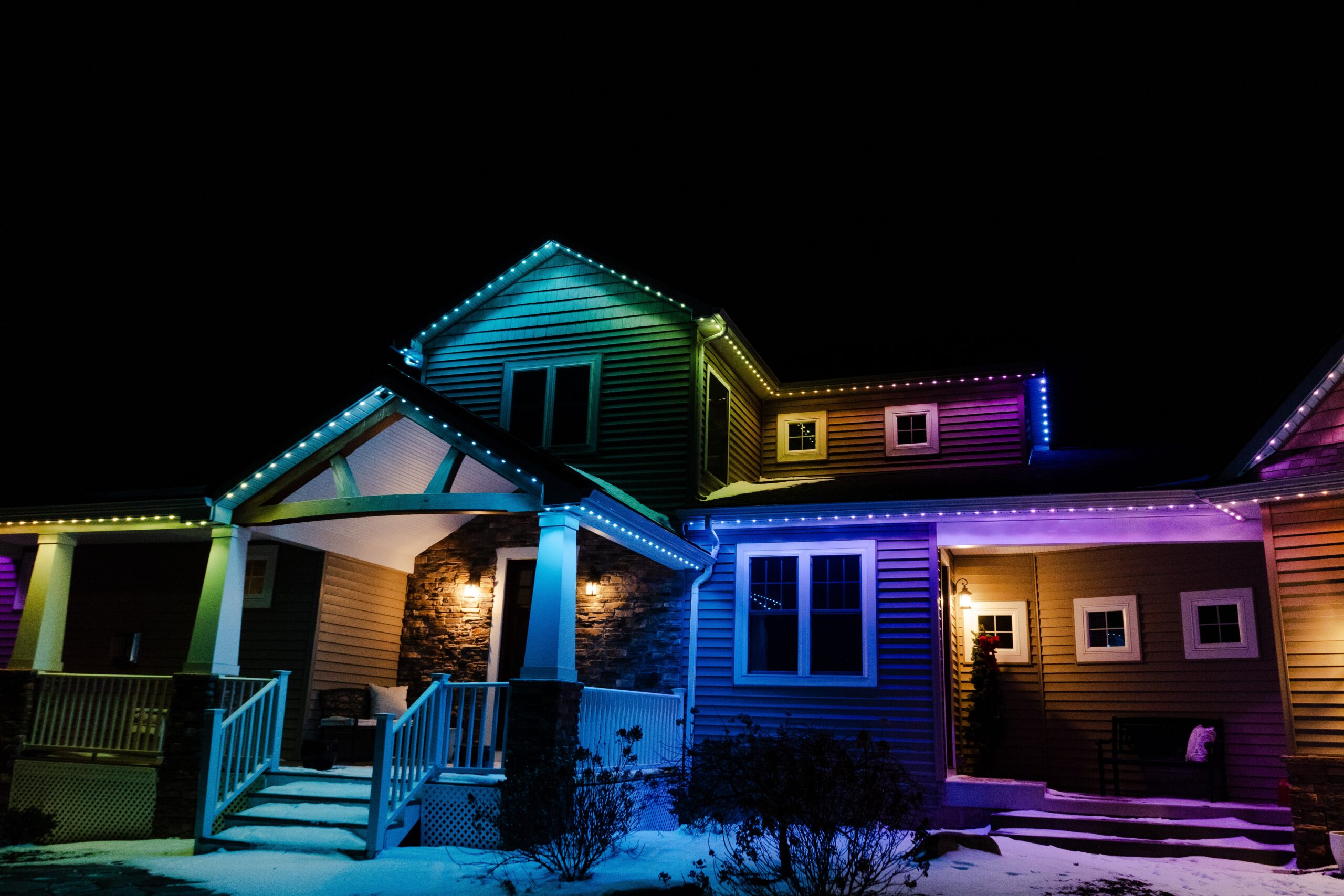 Our discreet, weatherproof system is permanently installed along the exterior of your home or building, giving you full control over your lighting with the tap of a button. From warm whites for everyday elegance to bold color displays for holidays and events, your lighting can now match any mood, season, or celebration — instantly.